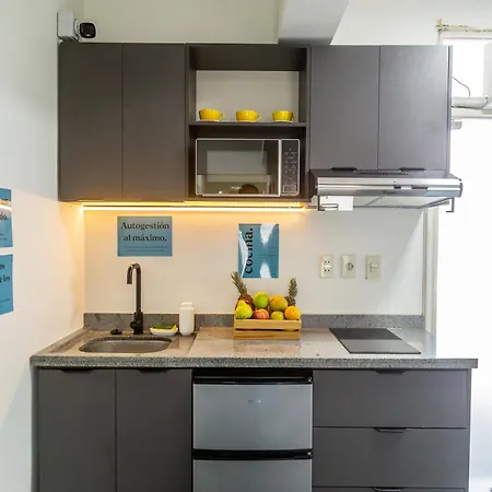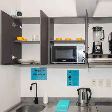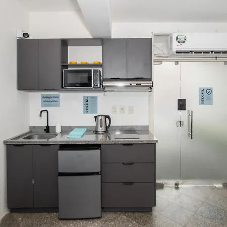 Departamento Privado 2 Habitaciones Con Parking En El Centro De Asuncion apartment offers an equipped kitchen with all necessary appliances.